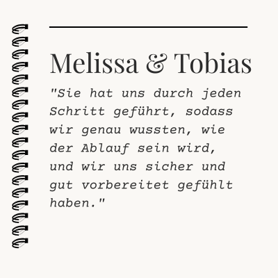 Ich feier es, wenn zwischen uns dieses Gefühl von „Wir kennen uns schon ewig.“ entsteht. Mit meinen Paaren bin ich lieber auf der freundschaftlichen Ebene unterwegs, als auf der Dienstleister > Kunden Ebene. Nur eben mit der nötigen Erfahrung an den passenden Stellen 😉