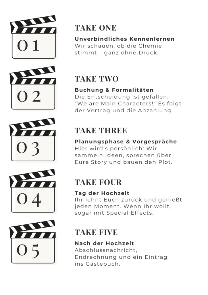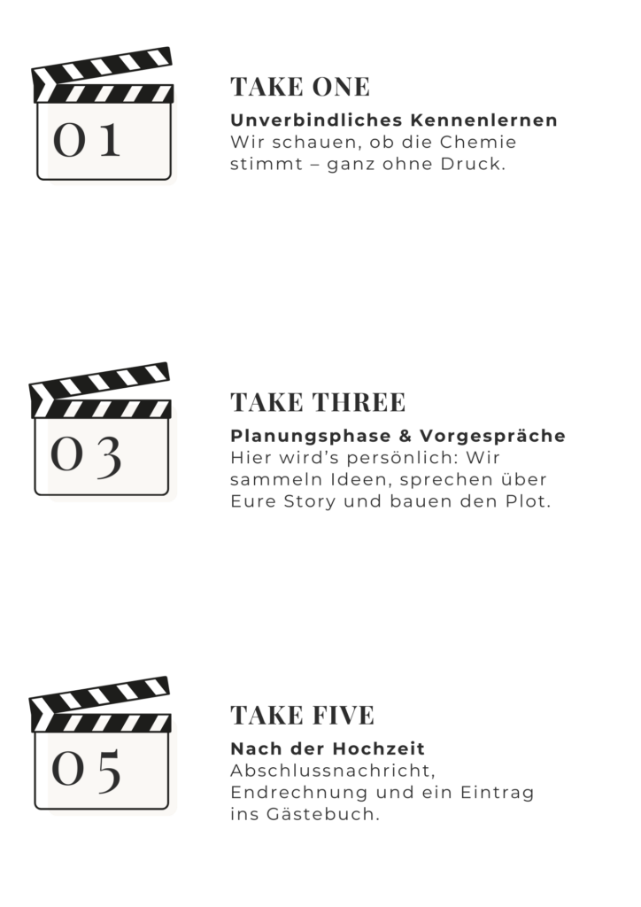 Und wenn Ihr wollt, dass Euer Tag nicht nur passiert, sondern Bedeutung bekommt: Als Wedding Director setze ich die Highlights so, dass sie wirken. Ich moderiere die Programmpunkte, verwebe sie mit Eurer Story und behalte die Zeit im Auge – damit Ihr Euch nicht um die einzelnen Szenen kümmern müsst, sondern den Moment wirklich erleben könnt.